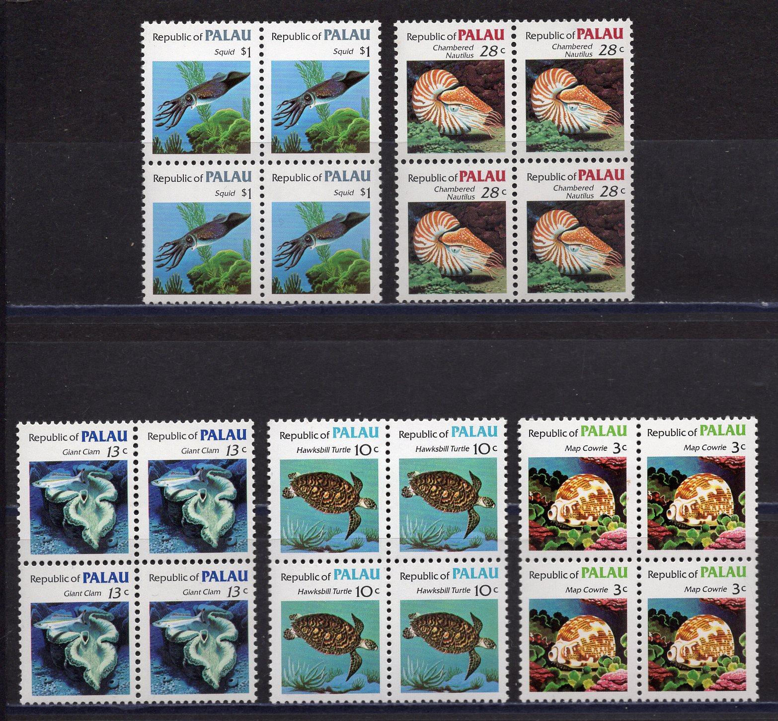 Почтовые марки. Палау. 1983г. Морская Фауна. №10,12-13,15,19. КБ.