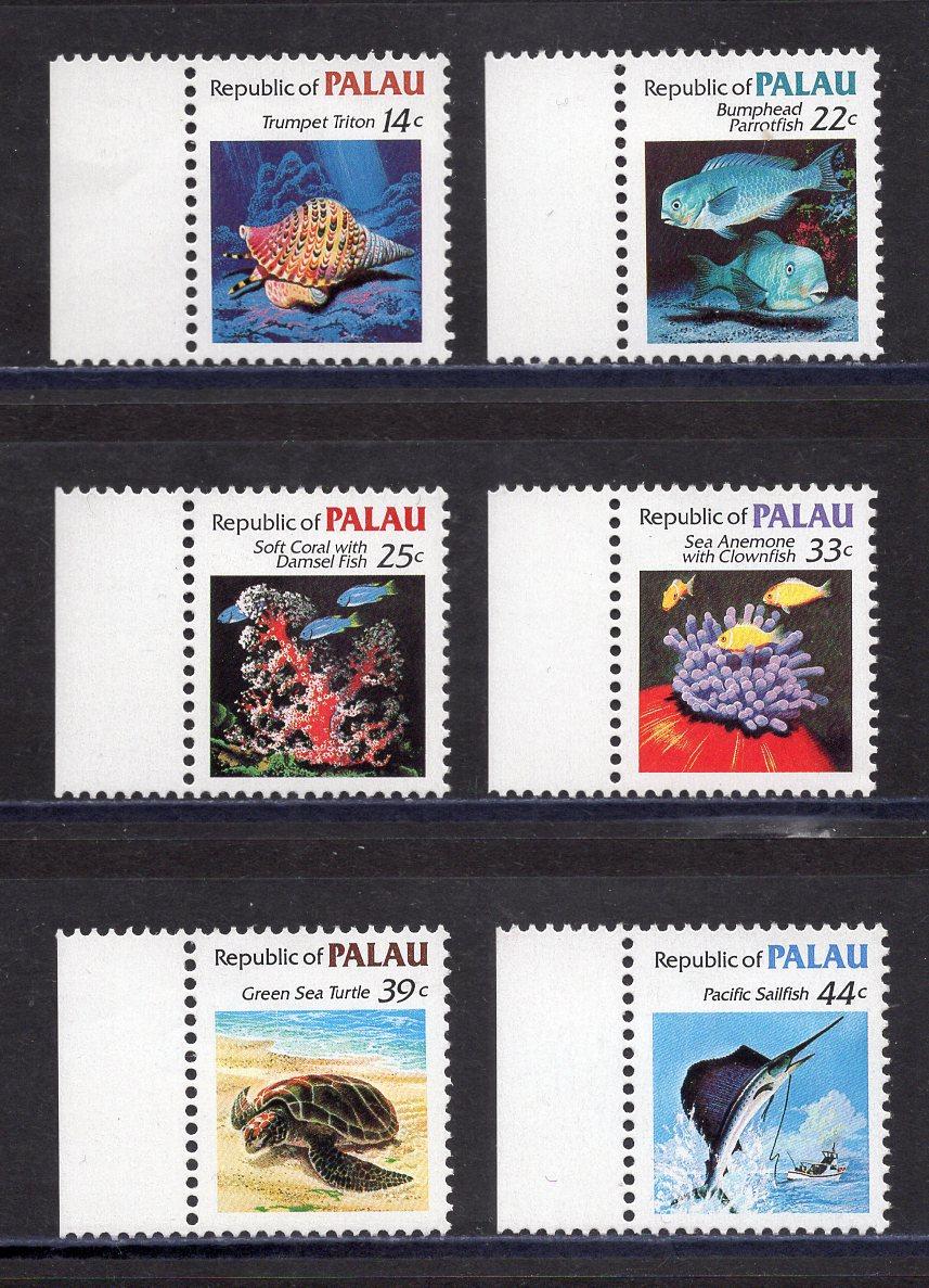 Почтовые марки. Палау. 1985г. Ракушки. Морская Фауна. №74-79