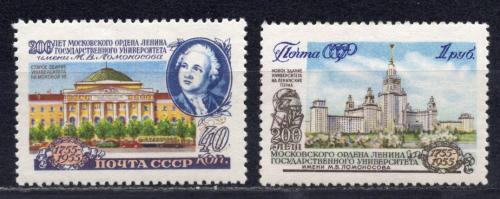 Почтовые марки. СССР, 1955 г. №1837-1838. 200 лет МГУ им. Ломоносова.
