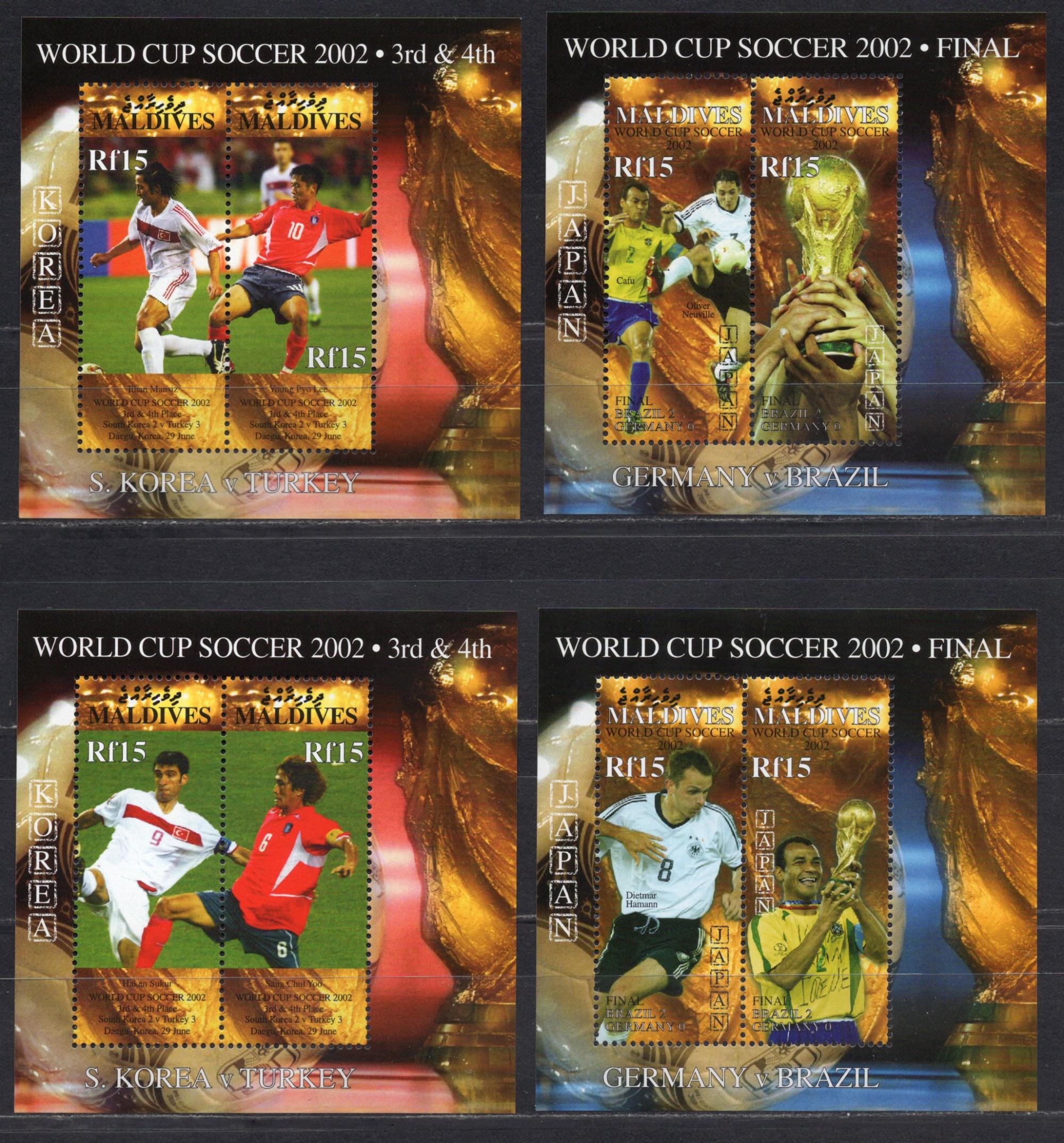 Почтовые марки. Мальдивы, 2002 г. Бл. 527-530. Футбол. Финал. Призёры. (Mi 30.0 e)