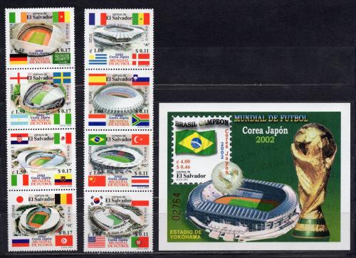 Почтовые марки. Сальвадор, 2002 г. №2278-2285. Бл. 56. Футбол.