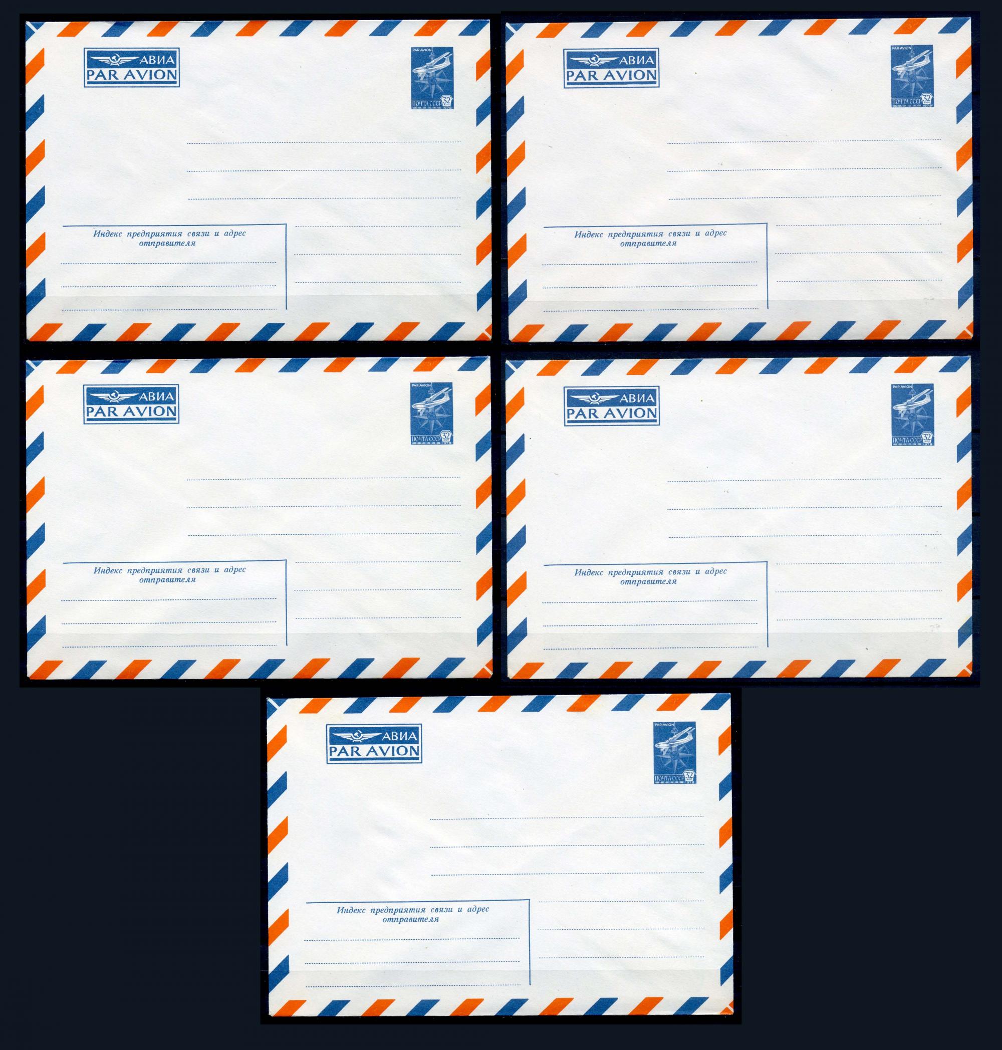 Почтовые конверты АВИА. PAR AVION. СССР. 1978 г. 5 штук.
