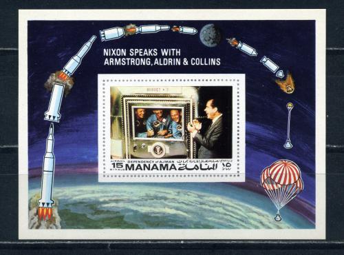 Почтовые марки. Манама. 1972г. Президент Никсон. Космос. Блок №172в. Беззубц. (Mi: 12.00 Евро)