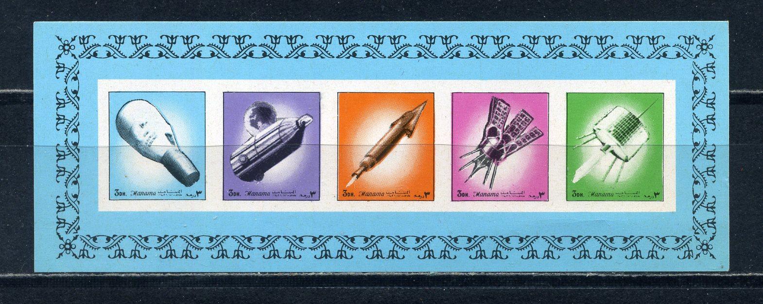 Почтовые марки. Манама. 1972г. Космос. Блок №238в. Беззубц.