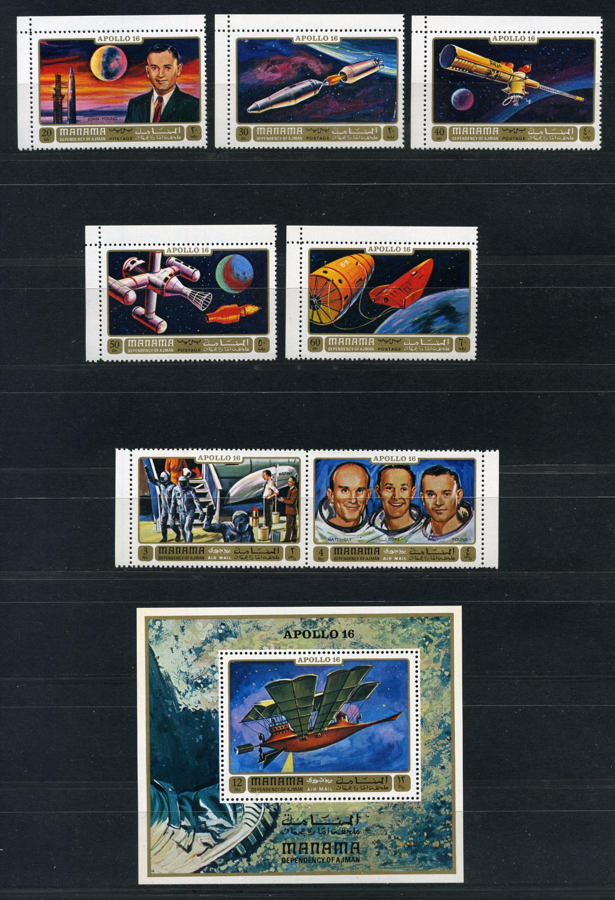 Почтовые марки. Манама. 1972г. Космос. Аполло-16. №746-752. Блок №153 (Mi: 13.00 Евро)