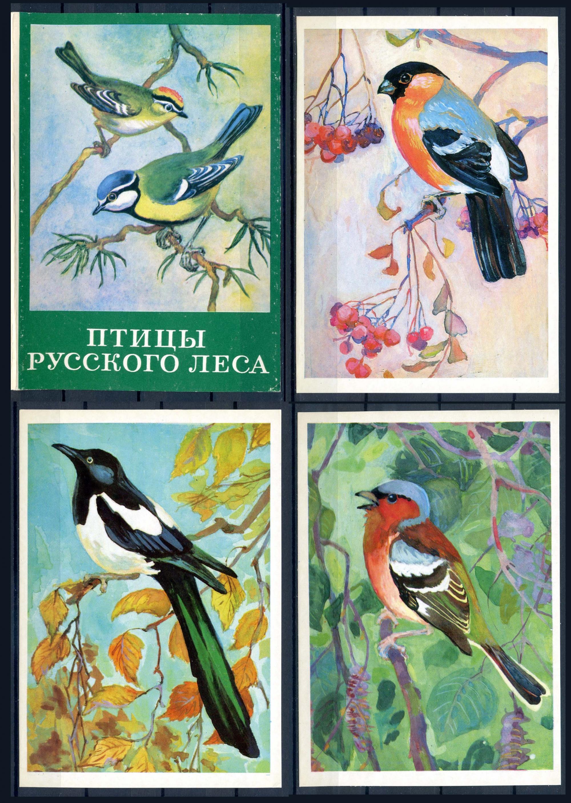 Комплект открыток. СССР 1979 г. Птицы русского леса. 16 открыток (полный).
