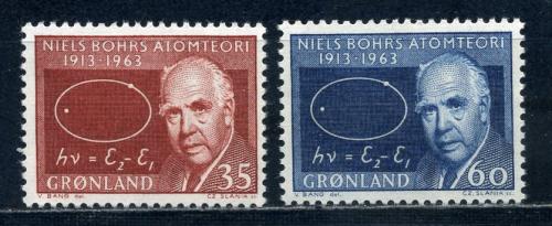 Почтовые марки. Гренландия. 1963г. Нильс Бор. Металлография. №62-63.
