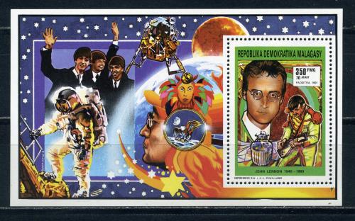 Почтовые марки. Мадагаскар. 1992г. Джон Леннон. Космос. Люкс-блок. №1353.