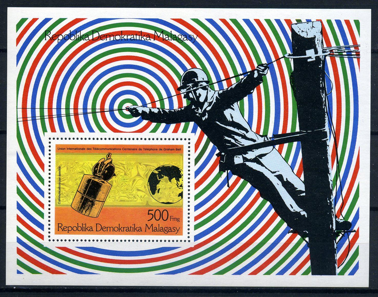 Почтовые марки. Мадагаскар. 1976г. № Бл. 12. Космос. Столетие телефона.