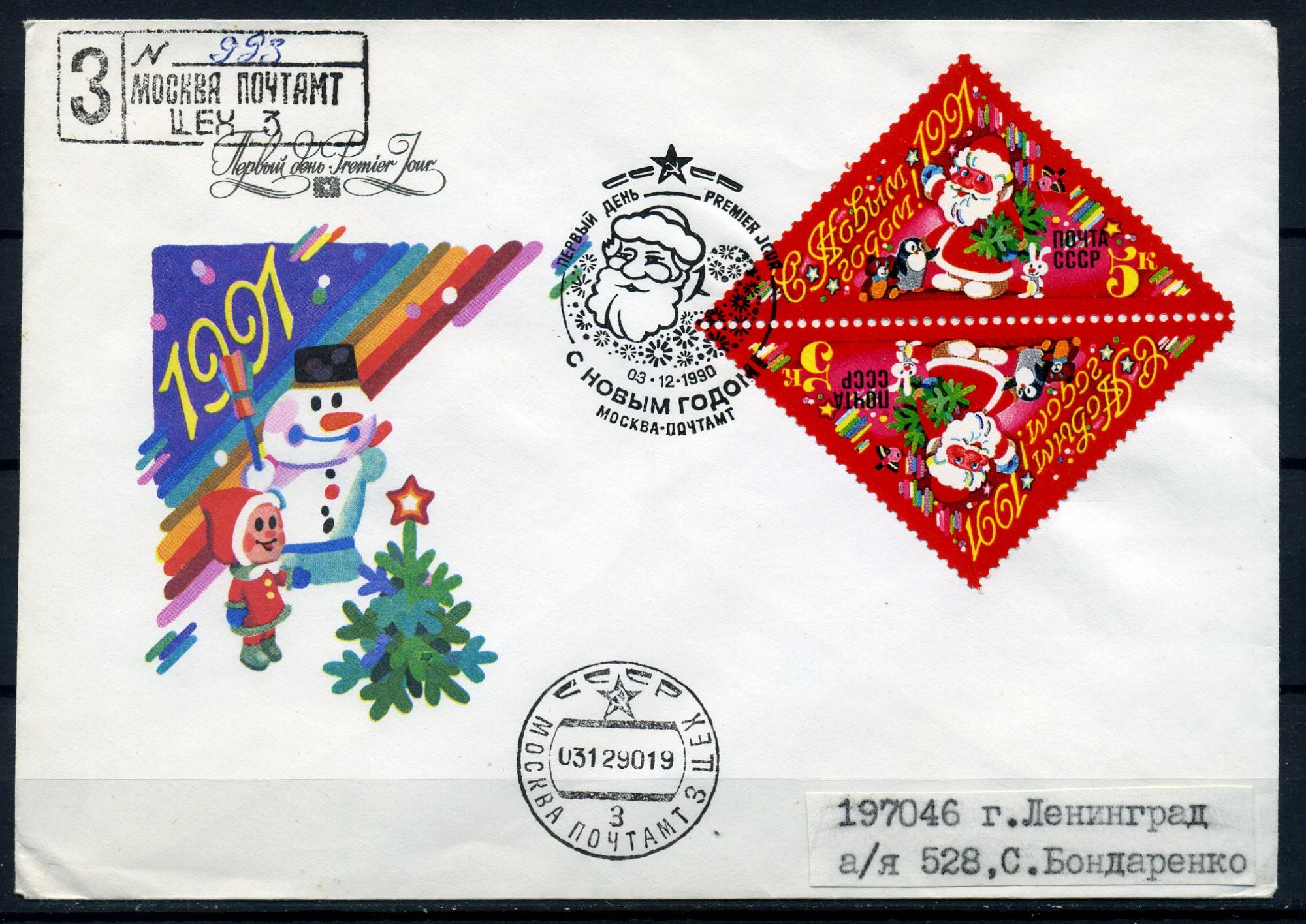 КПД прошедший почту. СССР 1990 г. С Новым годом!