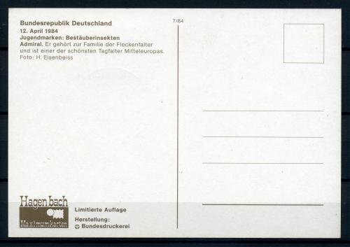 Картмаксимум. ФРГ 1984 г. Бабочка Адмирал. Ограниченный тираж.