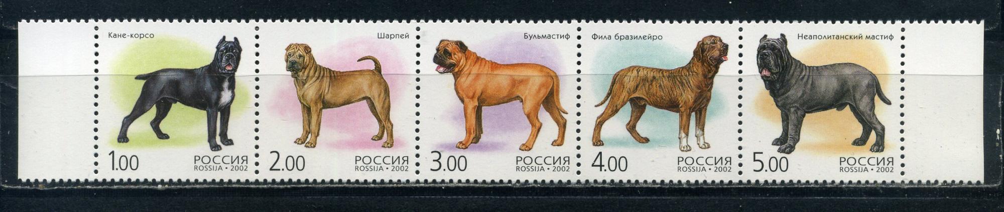 Почтовые марки. Россия. 2002г. Собаки. №739-743.