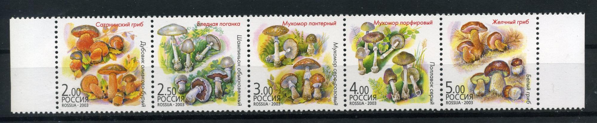 Почтовые марки. Россия. 2003г. Флора. Грибы-двойники. №876-880. Сцепка.