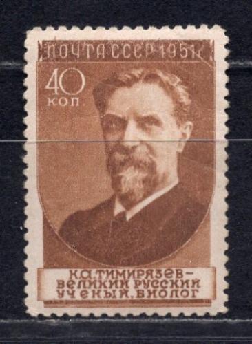 Почтовые марки. СССР, 1951 г. №1637. Узкие поля. (См. состояние!) Учёные: Тимирязев. (Кат. 650 р.)