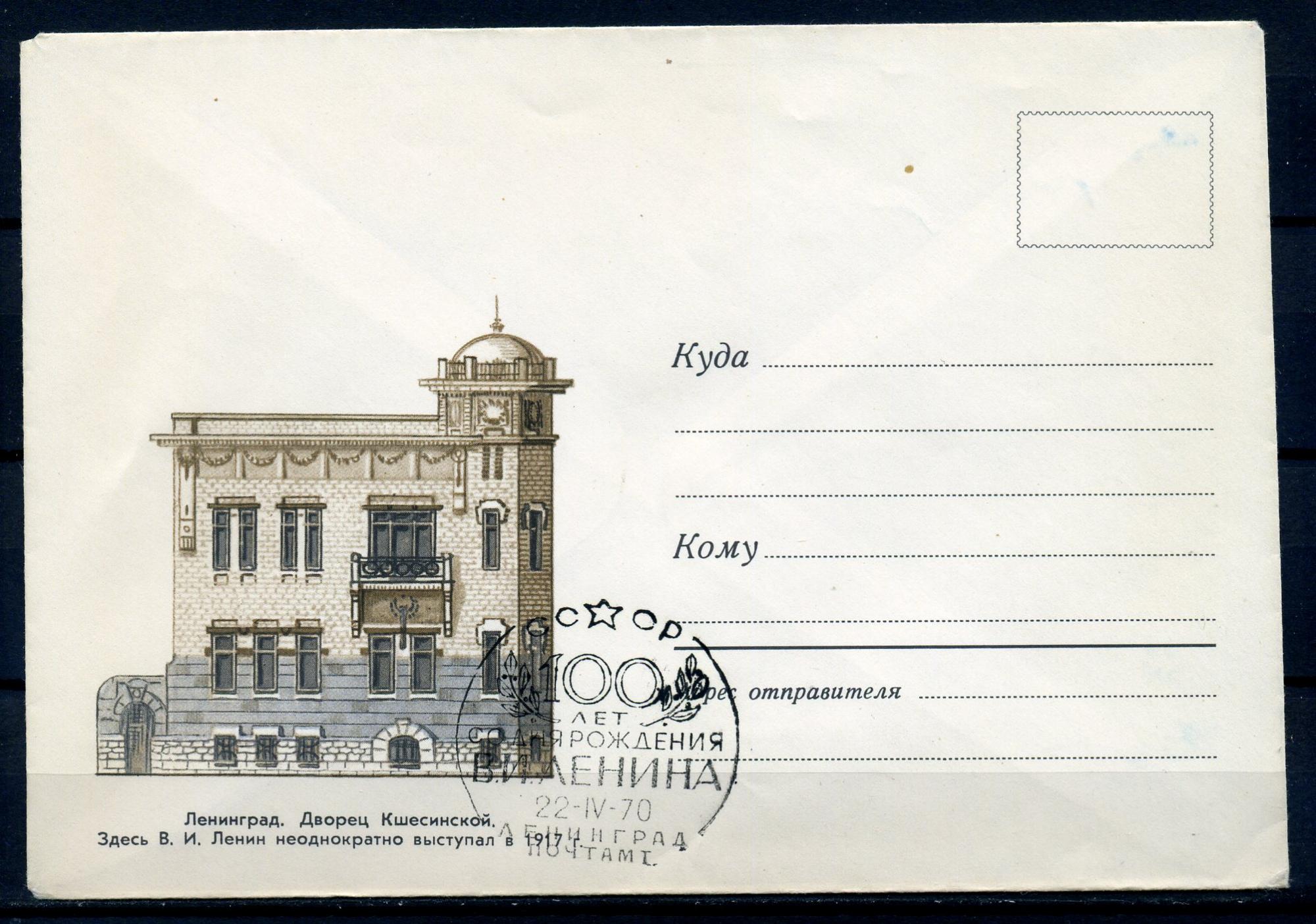 Немаркированный конверт со СГ. СССР 1969 г. Ленинград. Дворец Кшесинской. СГ - 100 лет со ДР Ленина 1970 г. КО.