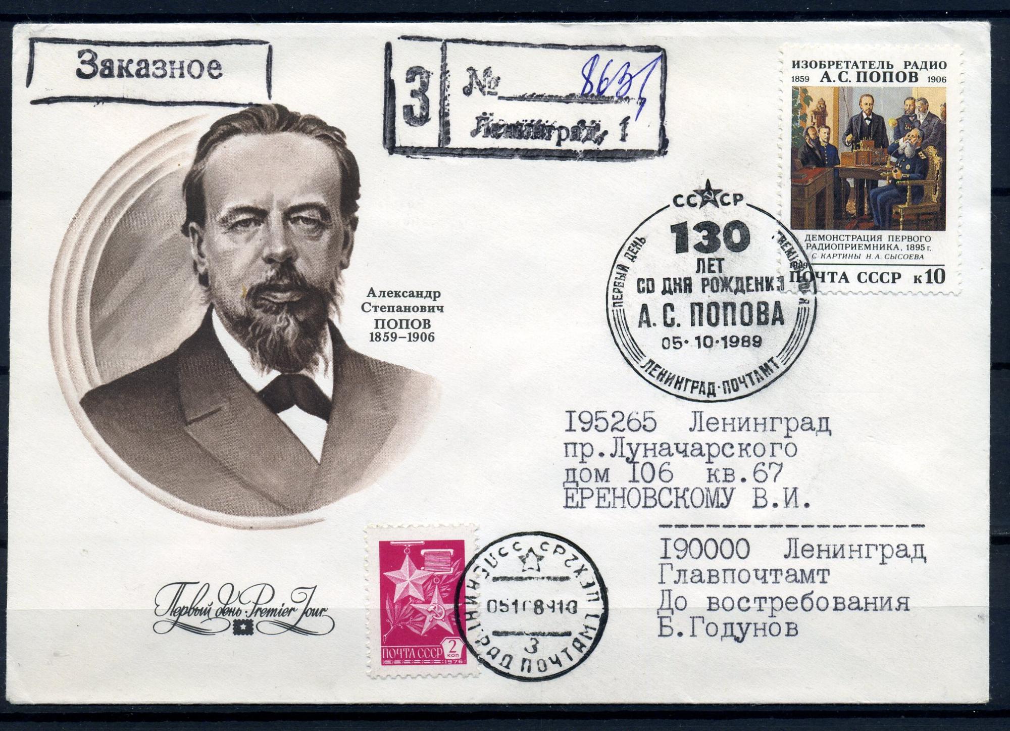 КПД, прошедший почту. СССР 1989 г. 130 лет со ДР А.С. Попова.