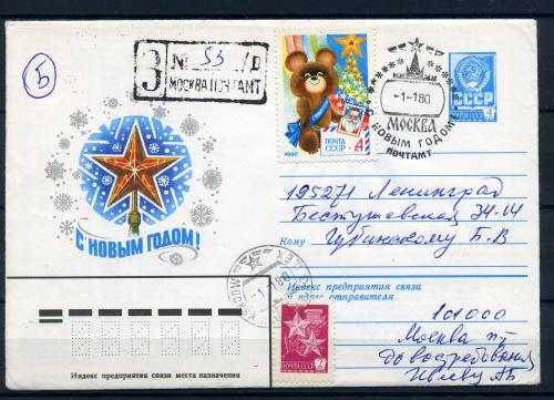 ХМК прошедший почту. СССР 1980 г. С Новым годом! (с вложением).