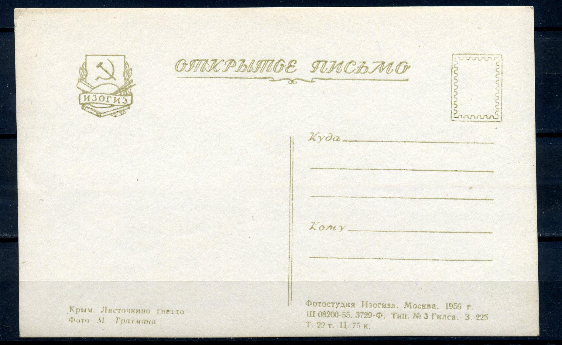Открытое письмо. СССР 1956 г. Крым. Ласточкино гнездо.