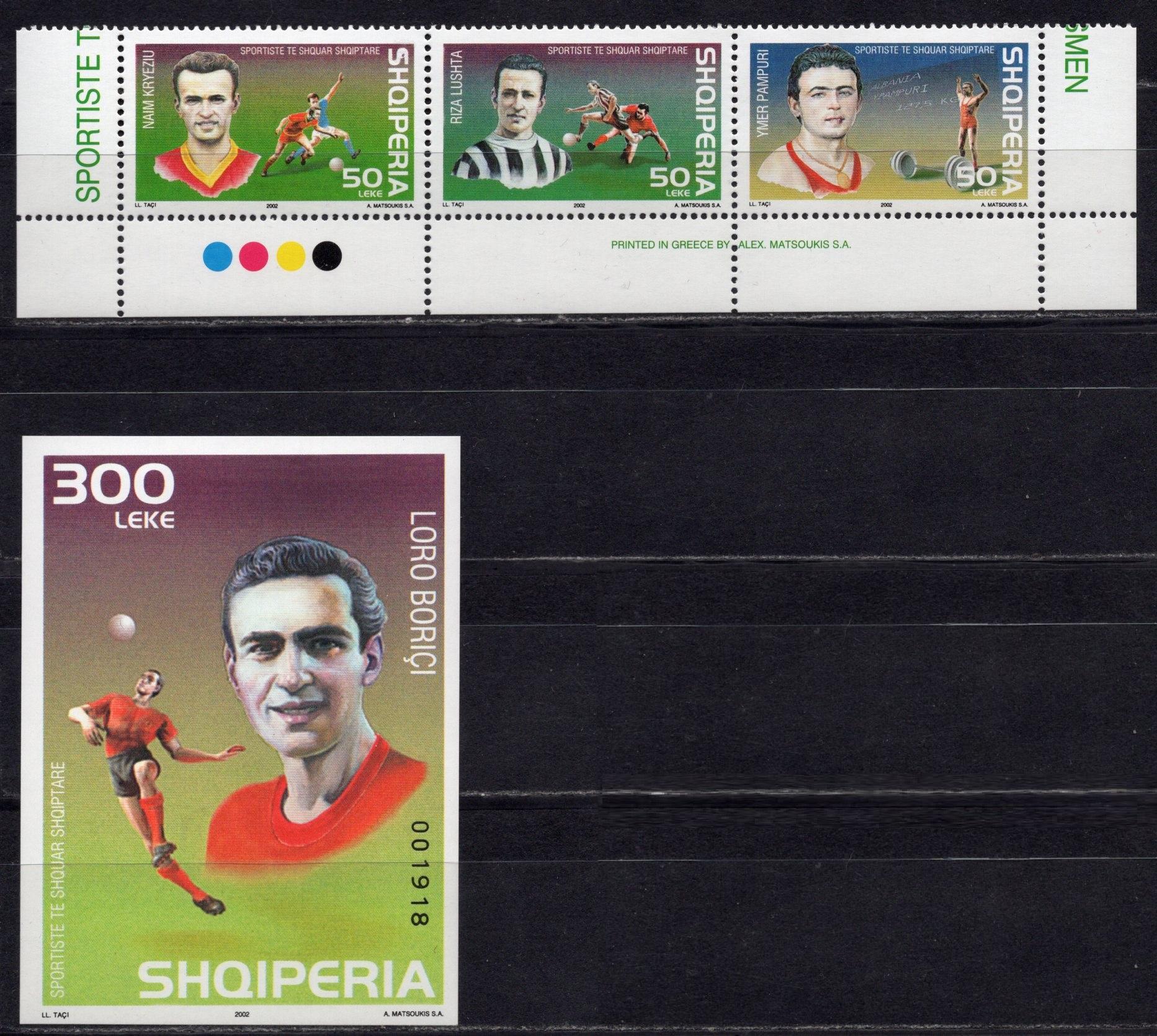 Почтовые марки. Албания, 2002 г. №2886-2888. Бл. 141. Футбол.