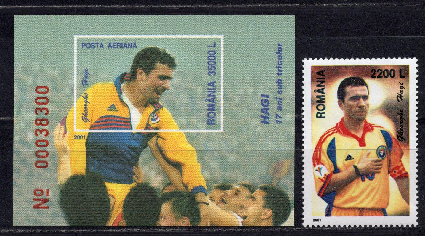 Почтовые марки. Румыния, 2001 г. №5571. Бл. 317. Футбол. Хаджи.