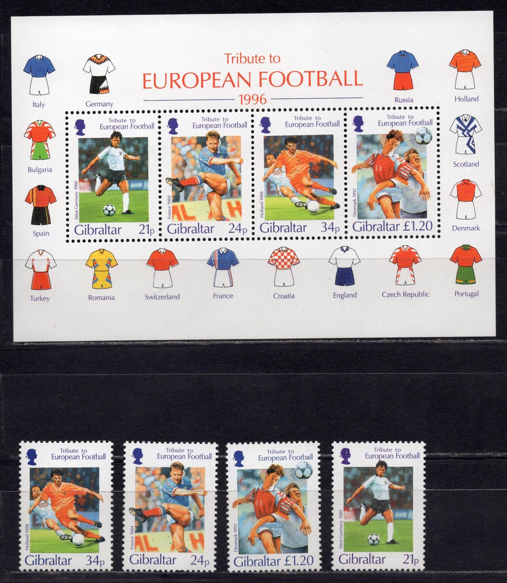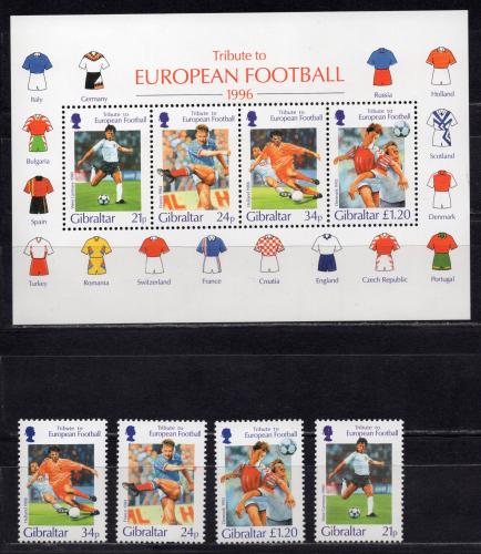 Почтовые марки. Гибралтар, 1996 г. №759-762, Бл. 25. Футбол. (Mi 14.0 e)