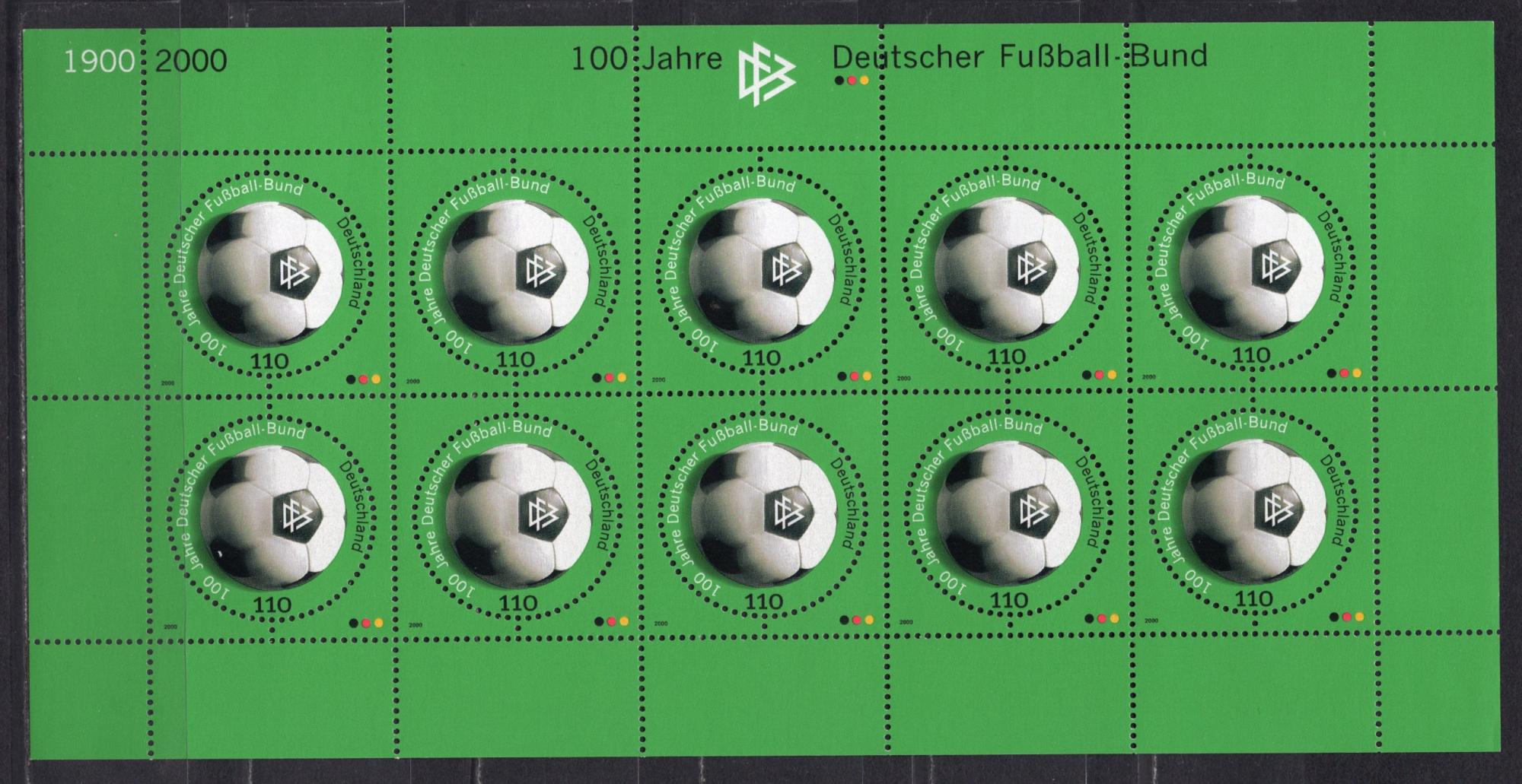 Почтовые марки. ФРГ, 2000 г. №2091. Столетие немецкого футбола. МЛ. (Mi 13.0 e)
