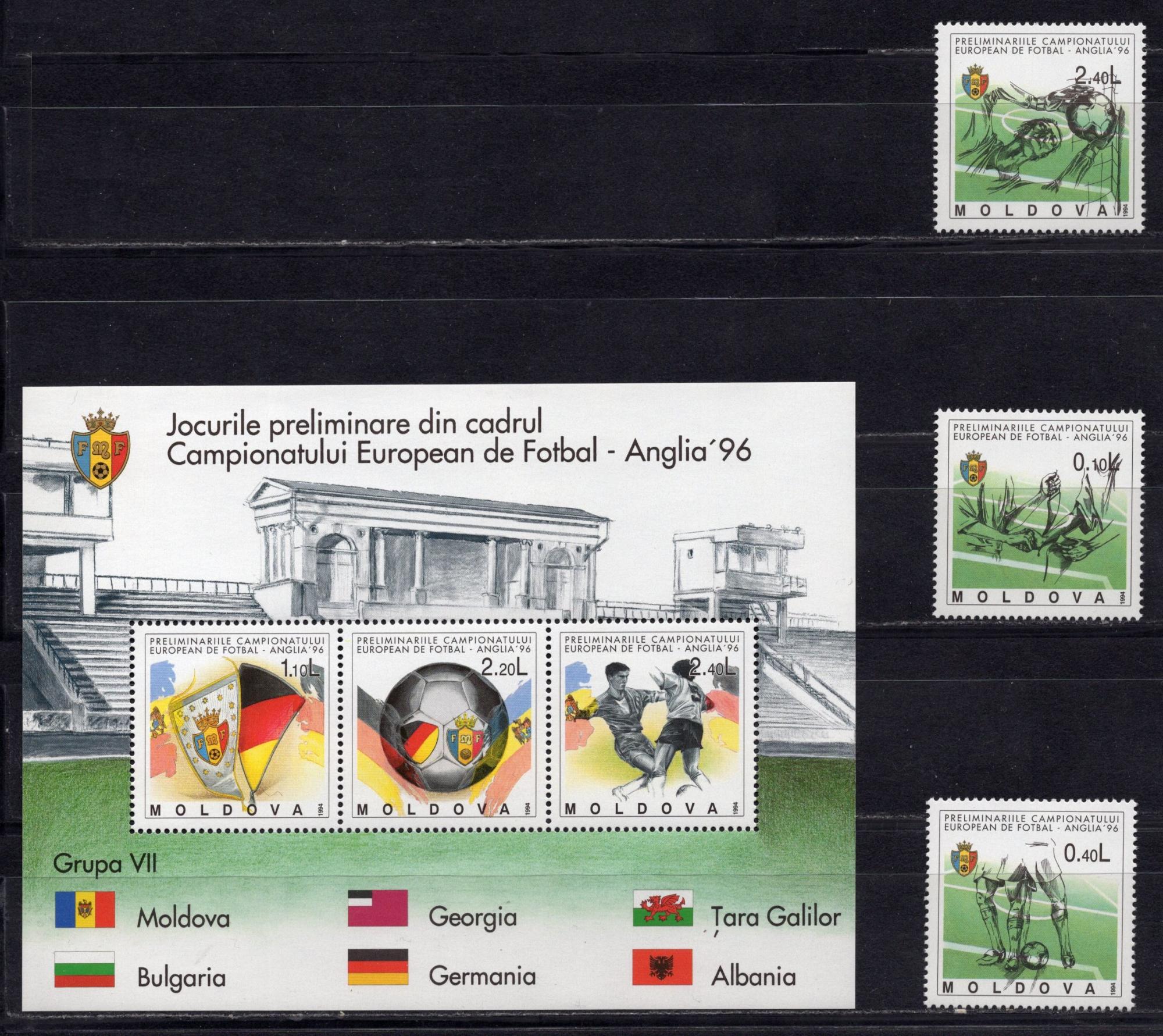 Почтовые марки. Молдова, 1994 г. №133-135. Бл. 5. Футбол. (Mi 12.0 e)
