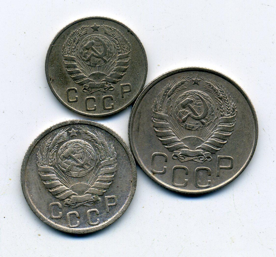 Монеты СССР. 10,15,20 копеек 1946 г. 3 шт.