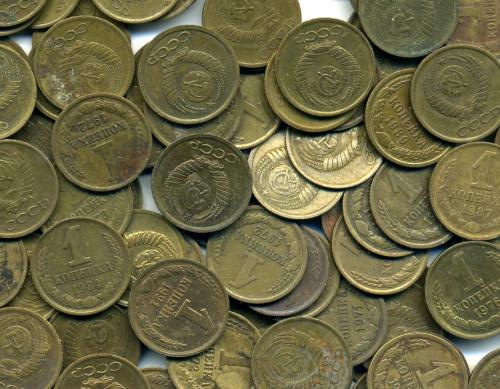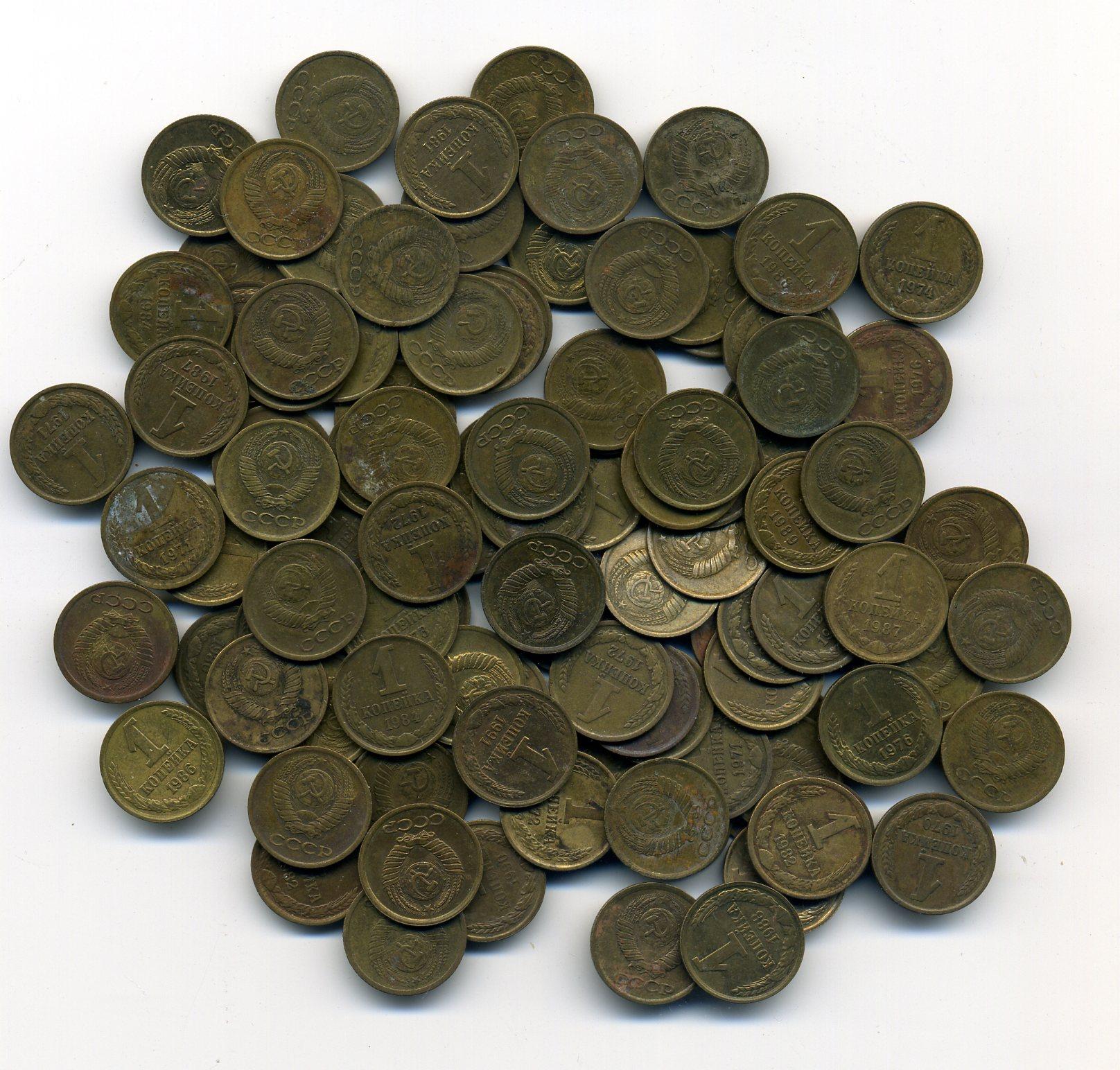Монеты СССР. 1 копейка 1961-1991 г. 100 шт.