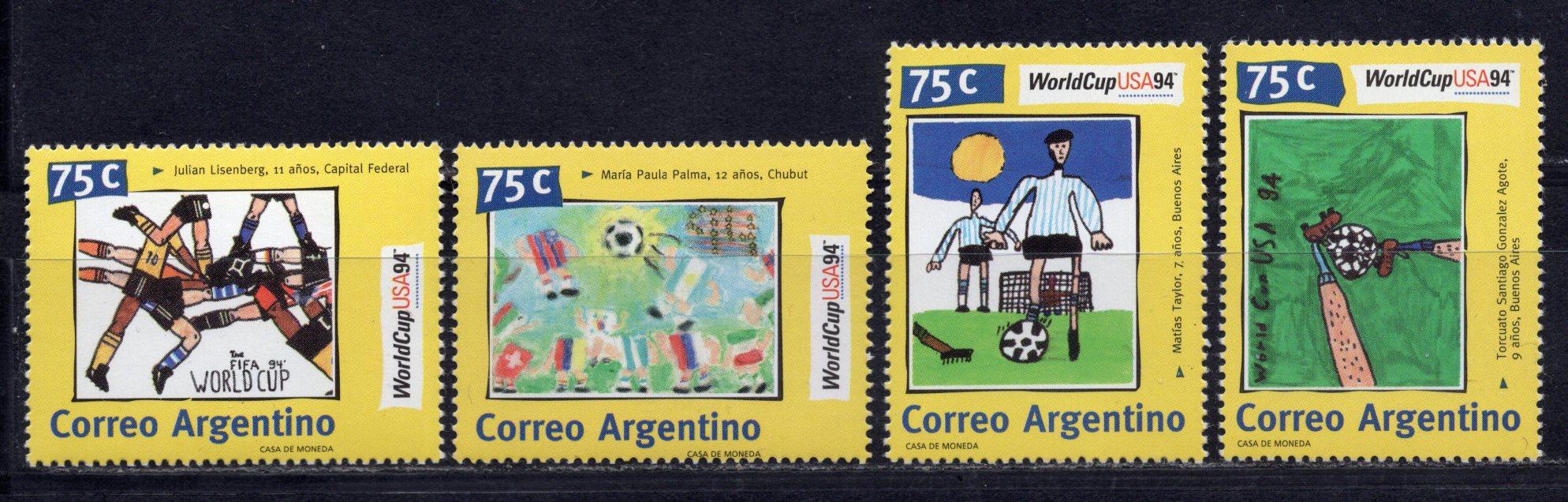 Почтовые марки. Аргентина, 1994 г. №2209-2212. Футбол. Детские рисунки.
