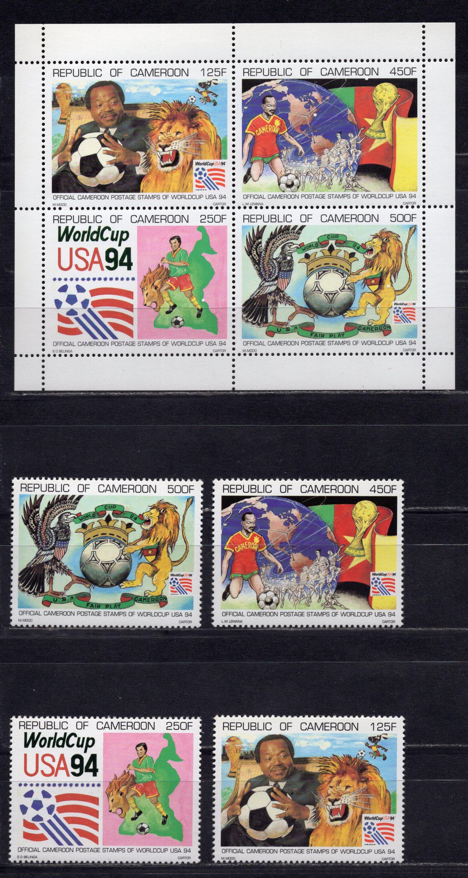 Почтовые марки. Камерун, 1994 г. №1210-1213, 1212 II (МЛ). Футбол. (Mi 88.0 e)
