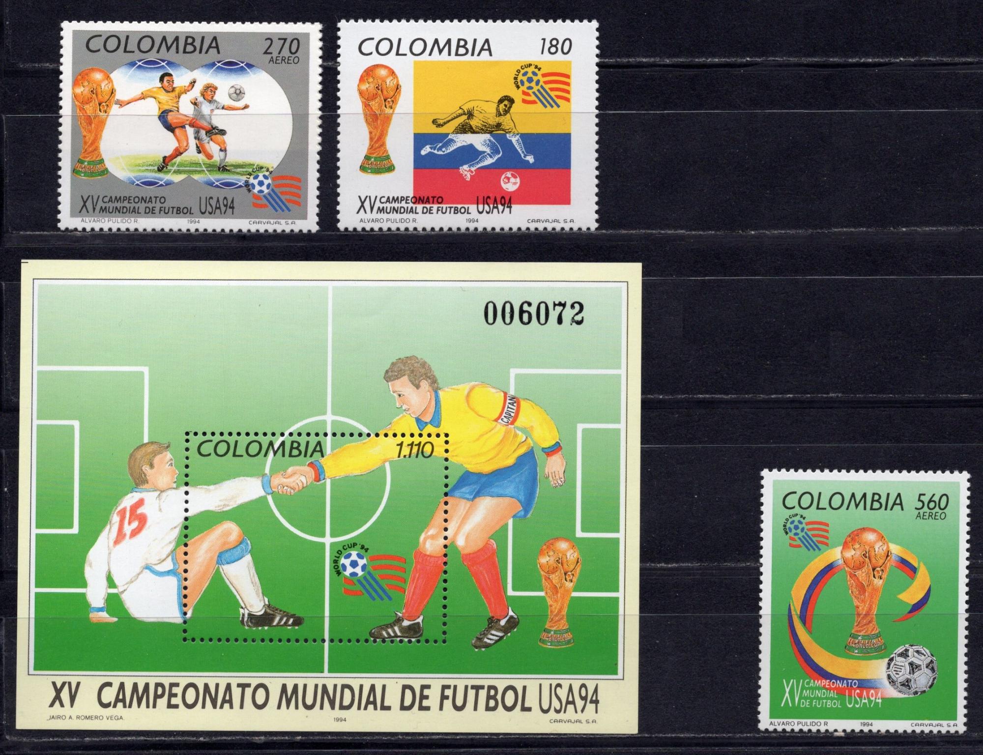 Почтовые марки. Колумбия, 1994 г. №1939-1941, Бл. 50. Футбол. (Mi 11.6 e)