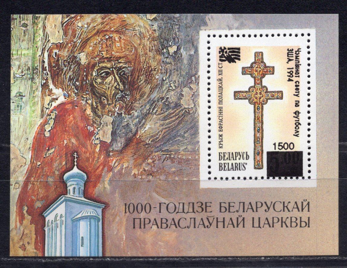 Почтовые марки. Белоруссия, 1994 г. Бл. 3. (Mi 12.0 e) (Белорус. текст) Белорусская православная церковь.