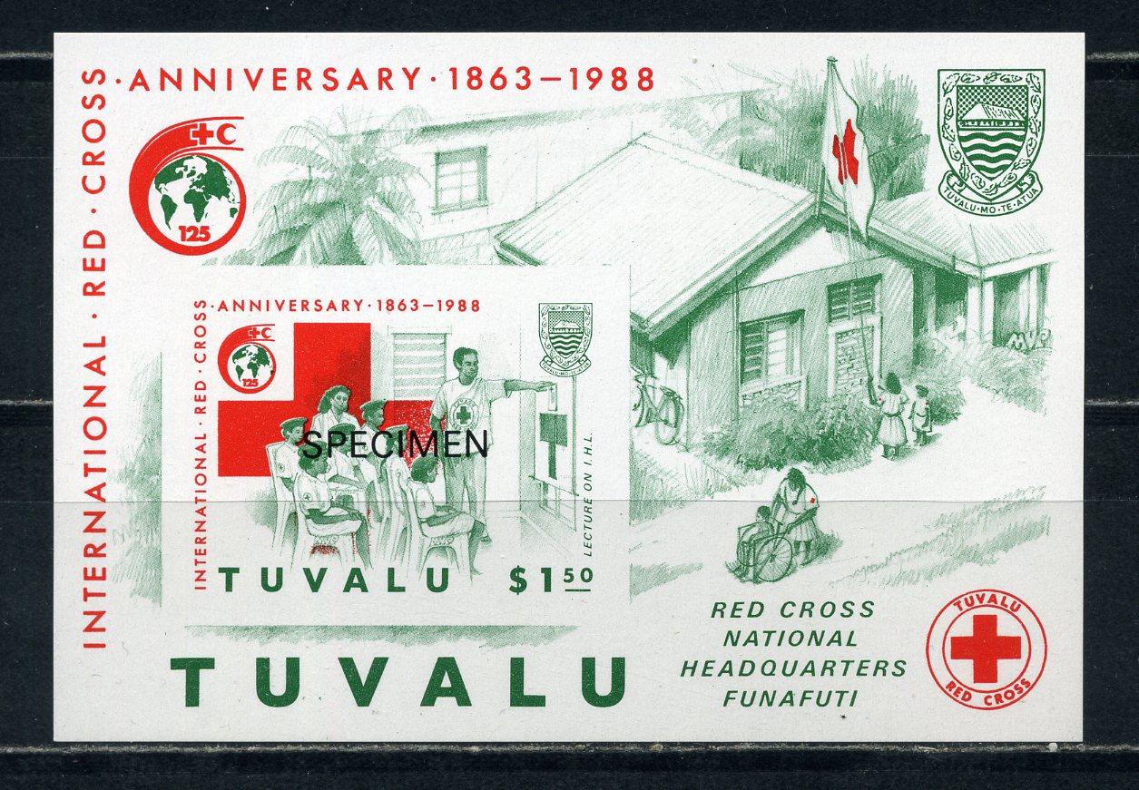 Почтовые марки. Тувалу. 1988г. Красный крест. Надпечатка. Блок №32В. Беззубц. SPECIMEN.