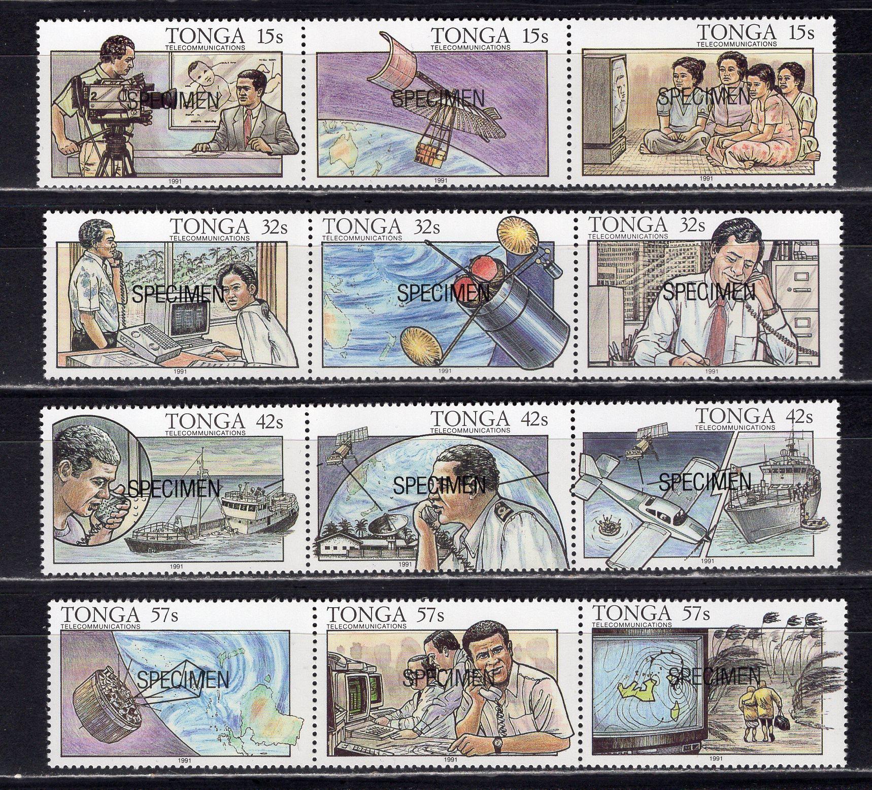 Почтовые марки. Тонга. 1991г. Космос и связь. Надпечатка SPECIMEN. №1175-1186.