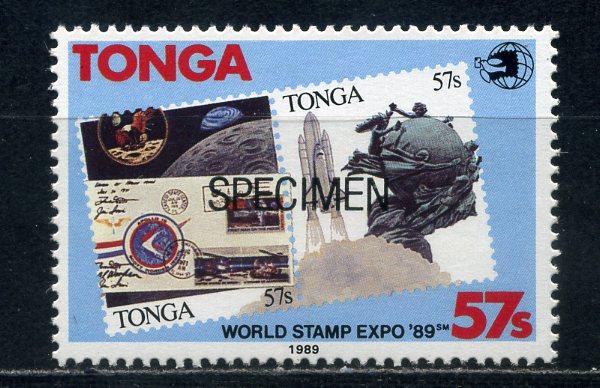 Почтовые марки. Тонга. 1989г. EXPO. Космос. SPECIMEN. Надпеч. - чёрная. RARE! №1101.