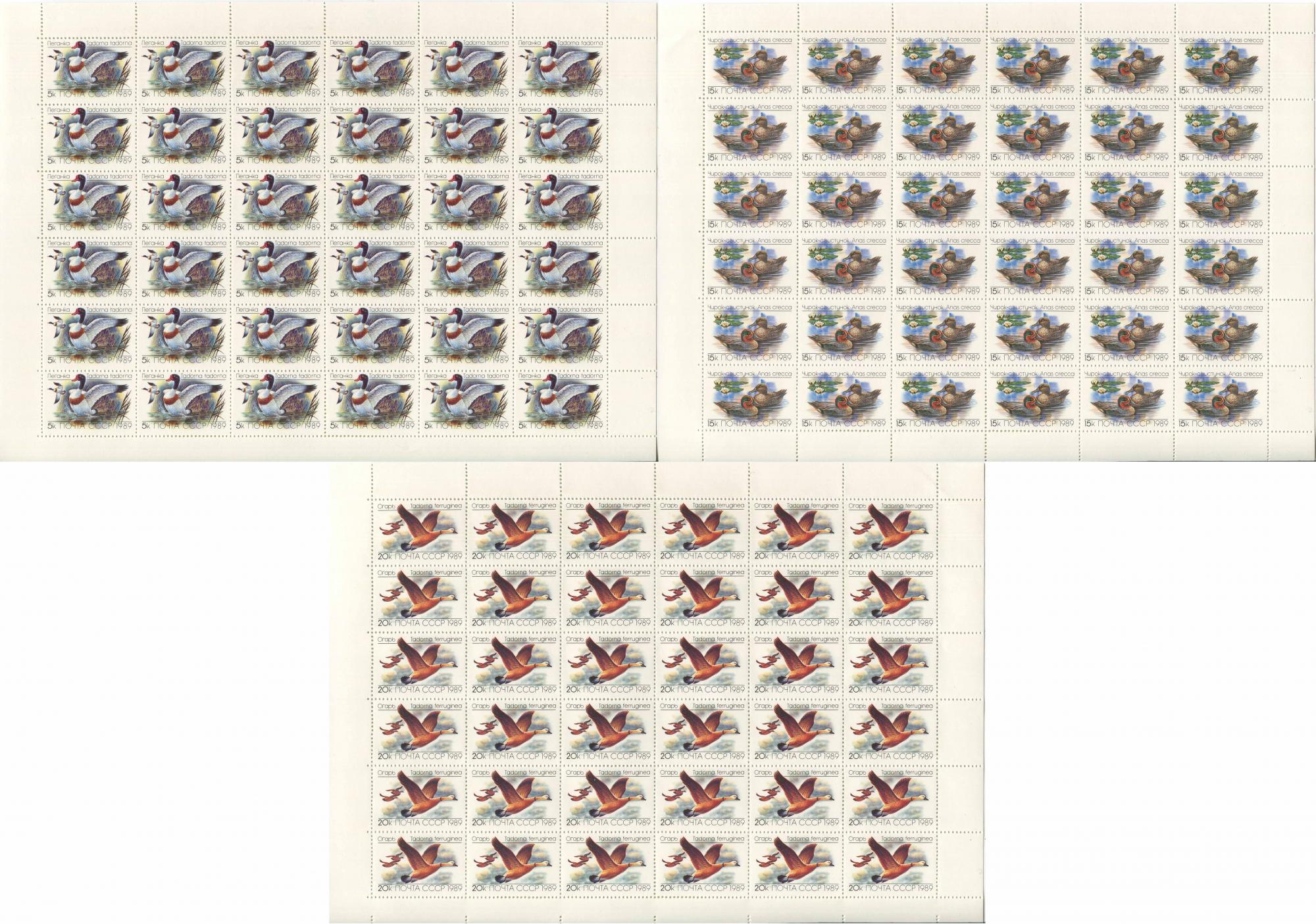 Почтовые марки. СССР. 1989. Утки. ЛИСТЫ. № 6084-6086 (Кат. Сол.: 40р./сер.)
