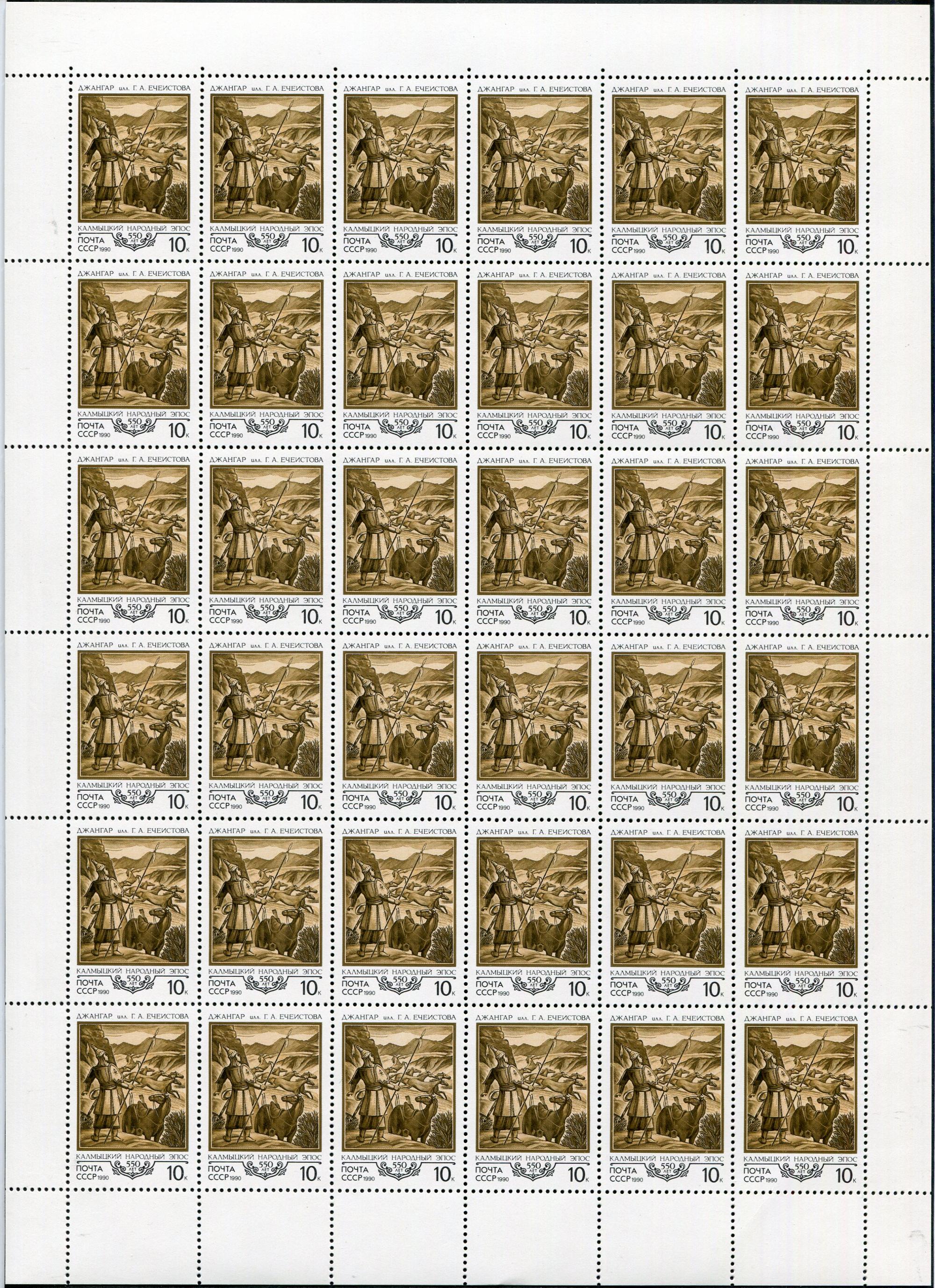 Почтовые марки. СССР. 1990. Эпос Джангар. ЛИСТ. № 6207 (Кат. Сол.: 20р./м.)