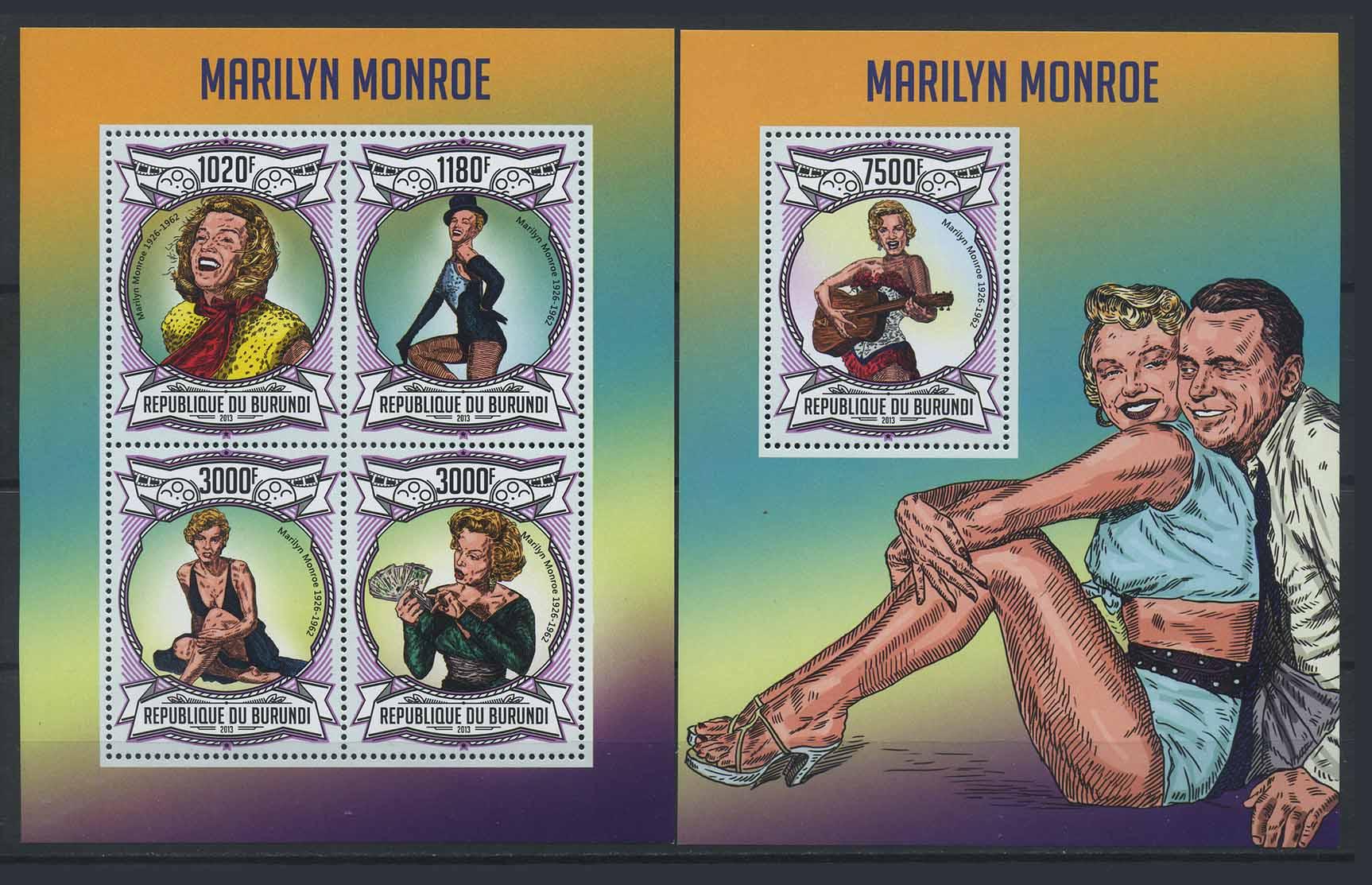 Почтовые марки. Бурунди. 2013 г. № 3048-3051, В1 334. Мерилин Монро.