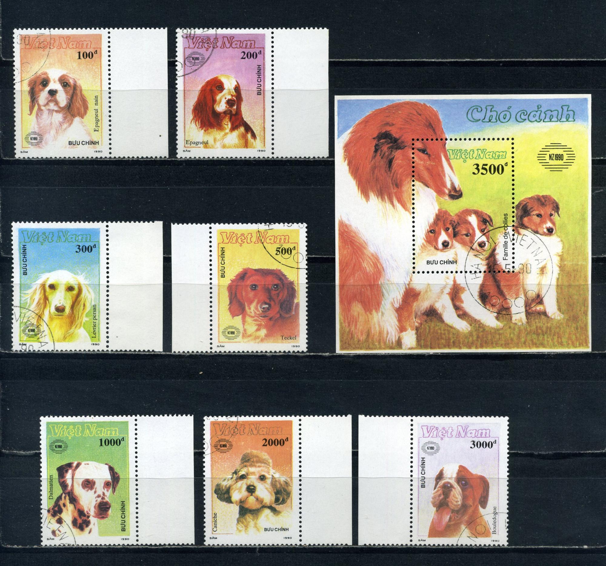 Почтовые марки. Вьетнам. 1990г. Собаки. №2168-2174. Блок №78.