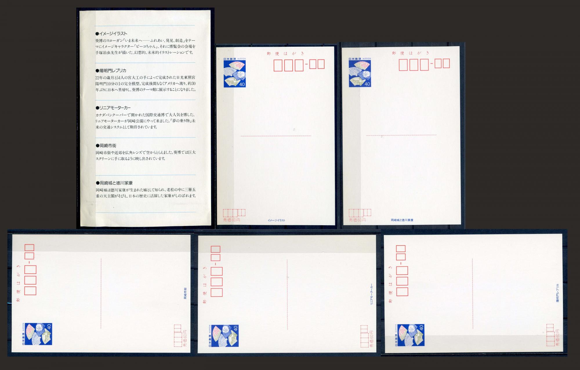 Комплект почтовых карточек с ОМ. (5 шт.) Япония 1987г. Азиатская выставка - город Окадзаки через 70 лет. R
