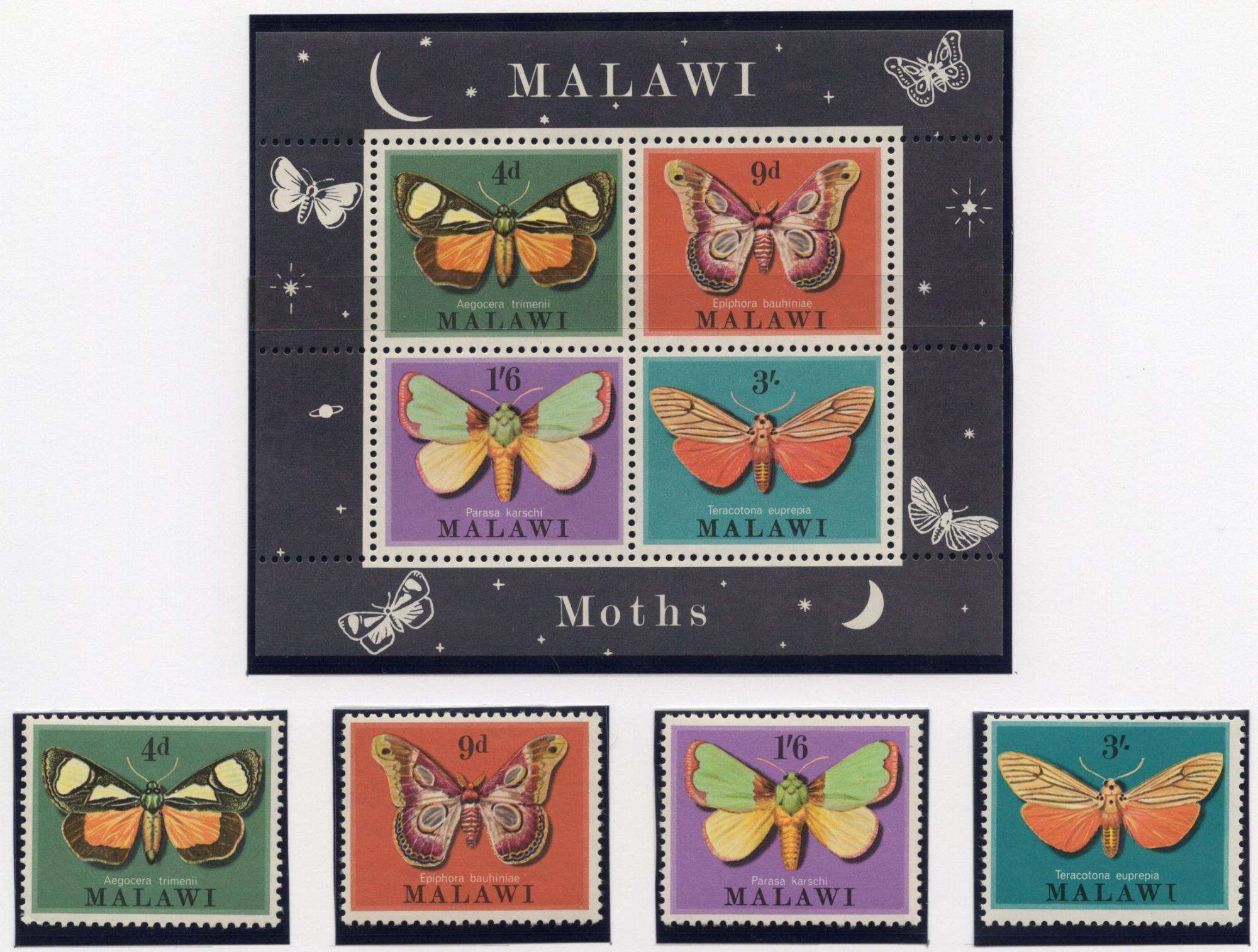 Почтовые марки. Малави, 1970 г. №134-137, Бл.19. Фауна: бабочки.