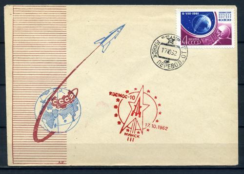Конверт с маркой и СГ. СССР 1962 г. "Космос-10". КО. Тир. 3000 экз.