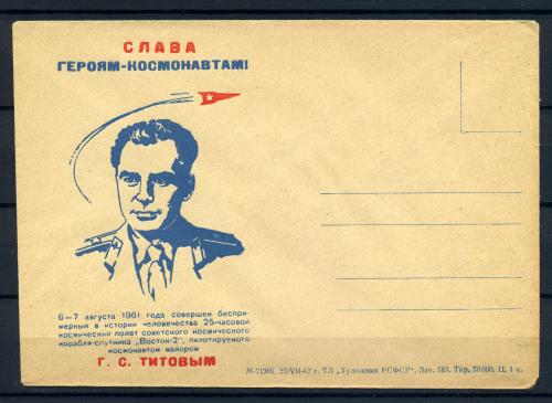 Немаркированный конверт СССР 1962 г. Г.С. Титов. "Восток-2". КЗ.