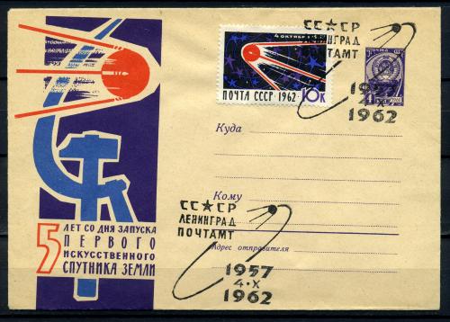 ХМК с маркой и СГ. СССР 1962 г. 5 лет со дня запуска 1-го искусственног спутника Земли. КО.