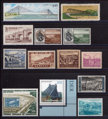 Почтовые марки. Италия, Испания и т.д. Сборный лот. Мосты, мосты...