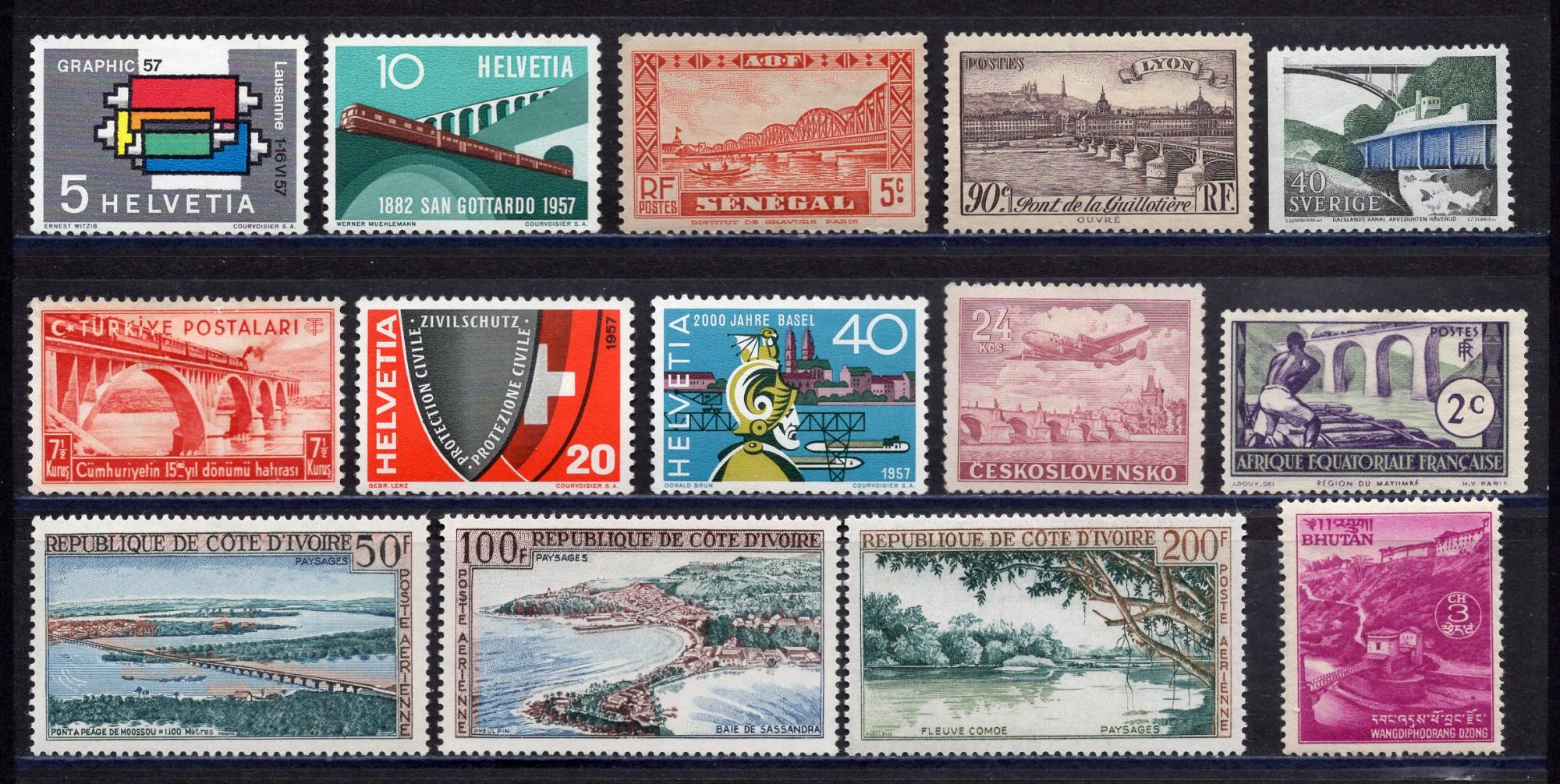 Почтовые марки. Сенегал, Кот д'Ивуар и т.д. Сборный лот. Мосты, мосты...