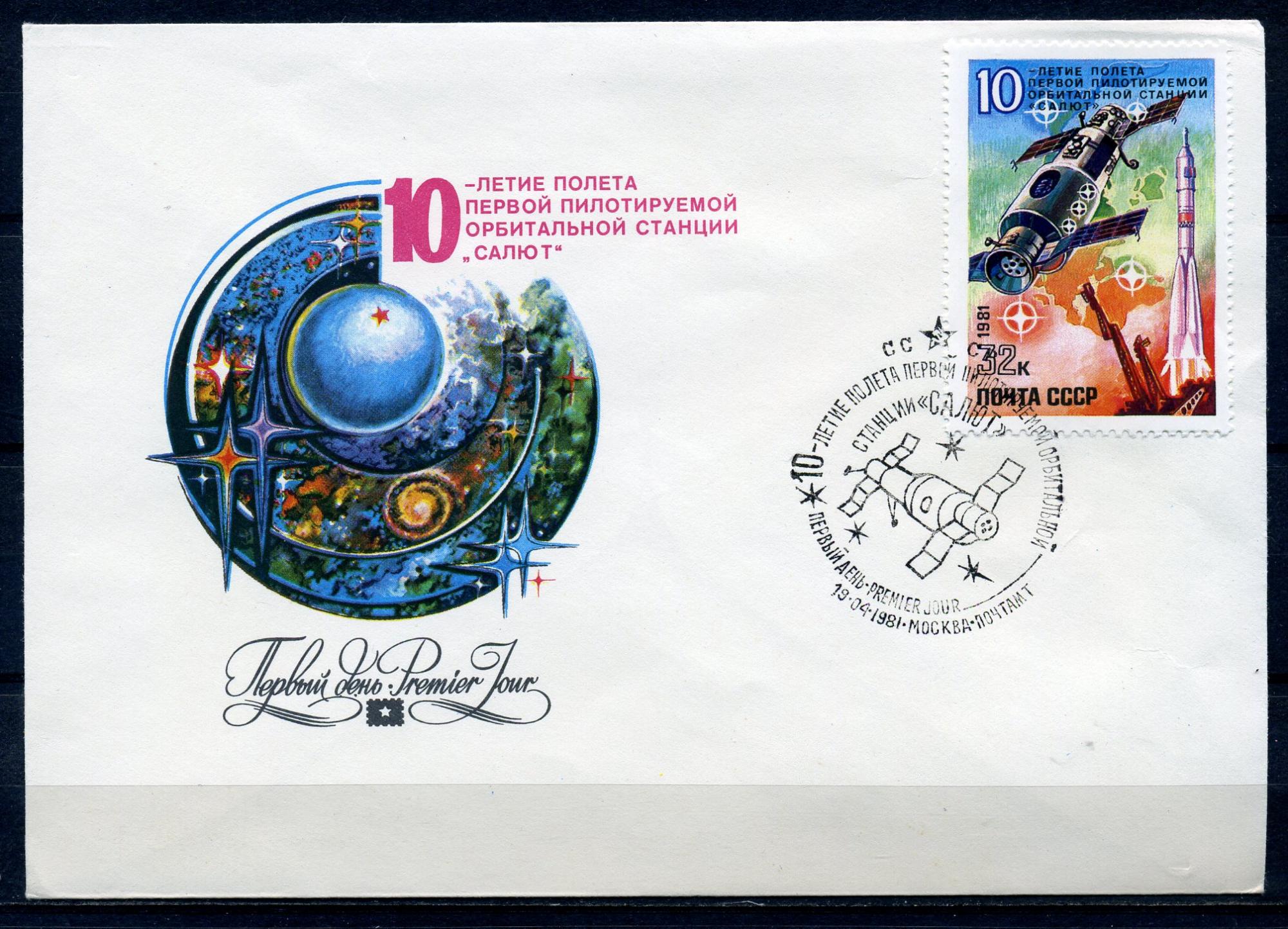 КПД со СГ. СССР 1981 г. 10-летие полета орбитальной станции "Салют". КО
