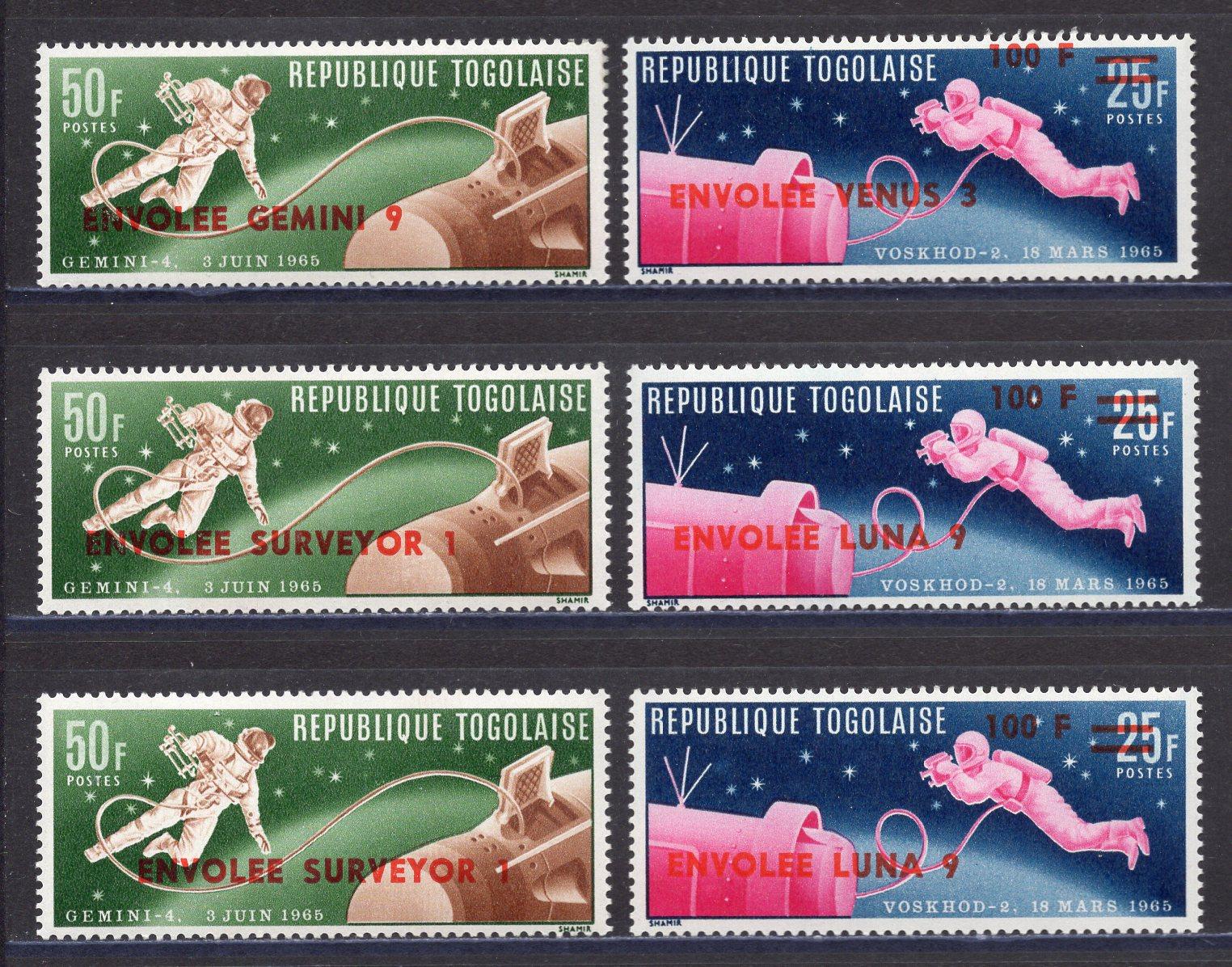 Почтовые марки. Того. 1966г. Космос. Надпечатка. №513-516. 1 серия + Сдвиги Надпечатки. Сличайте!