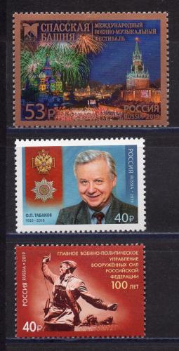 Почтовые марки. Россия. 2019г. Спасская Башня. О.Табаков. №2528. №2537. №2539.